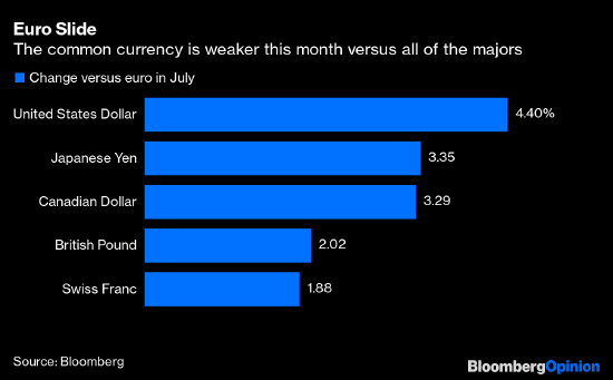 当欧元兑美元跌破平价后,欧元的走弱正在迅速成为欧洲央行一块心病。虽然所谓的平价可能只是一个数字,但不可否认的是其意义绝不止于象征性。欧元兑美元跌破1将影响市场对欧元的信心,而且意味着投资者对欧洲经济前景的担忧不亚于美元的避险吸引力。本月晚些时候,欧洲央行急需进行比计划中力度更大的加息。